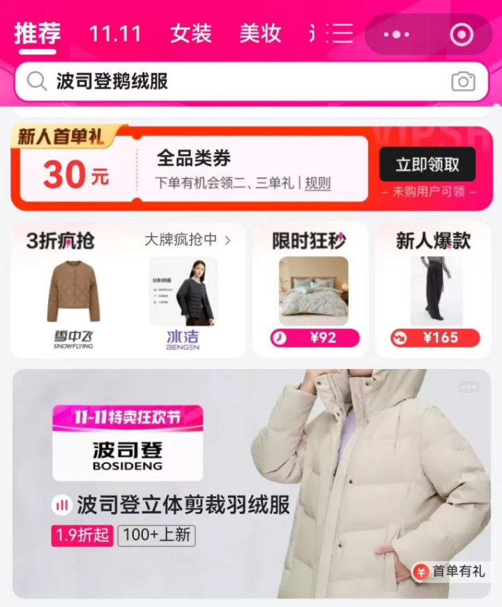 其实心里早有了目标:波司登。这个国产老牌的口碑一直不错,专业做羽绒服几十年,无论是工艺还是保暖性都值得信赖。只不过价格也不便宜,随便一件都要一两千,还好最近双11活动已经开始,于是想主流电商平台都对比一下价格,看看哪里便宜就在哪里买。