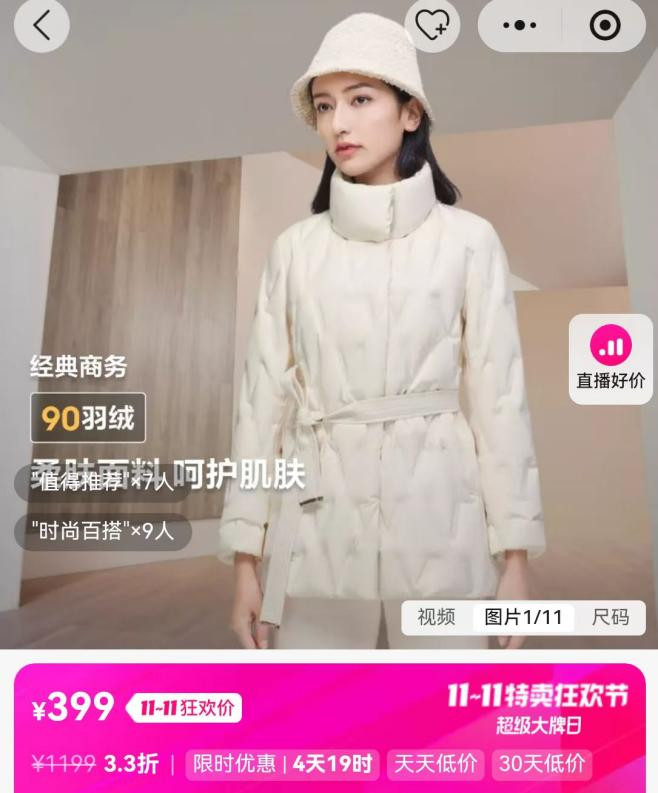 想想也是,波司登这样的国民品牌,同样的品质不输国外大牌,本身定价就实在,再加上平台让利和双十一大促,只买一件也无需凑单,自然比那些先涨价再打折的套路实在得多。